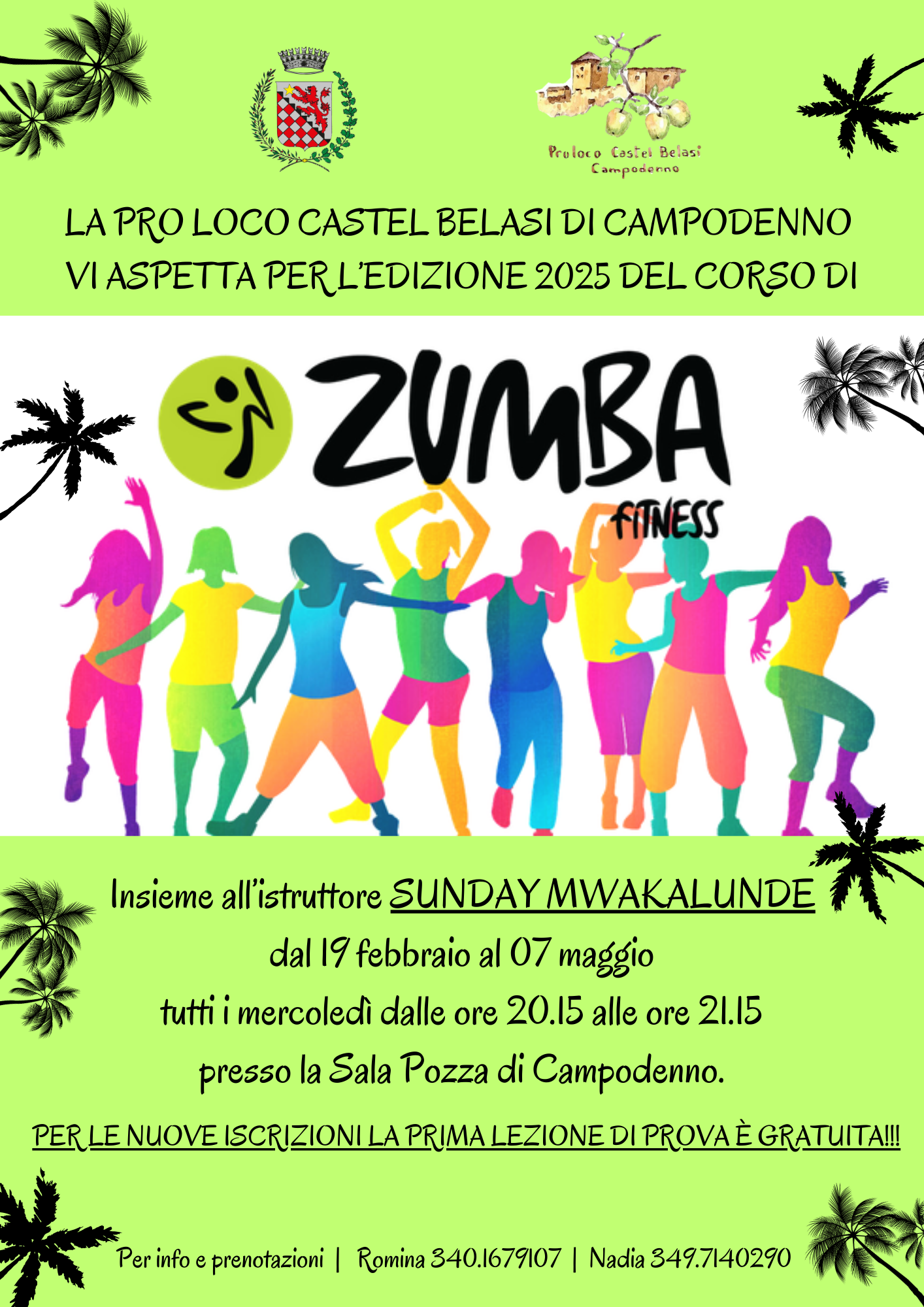 Ricomincia il corso di Zumba 2025! La Pro Loco Castel Belasi di Campodenno vi aspetta tutti i mercoledì presso la Sala Pozza a Campodenno insieme all'istruttore SUNDAY MWAKALUNDE per un'ora di movimento e divertimento insieme!